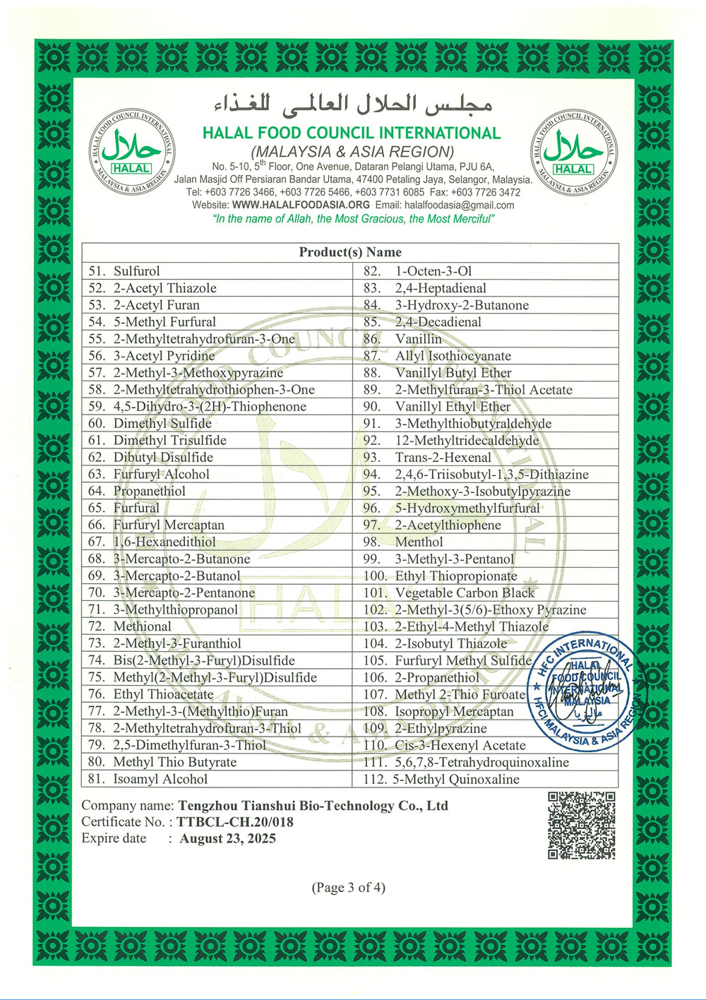 滕州市天水生物科技有限公司成立于2011年9月,是目前國(guó)內(nèi)雜環(huán)類合成食品香料、日化香料和醫(yī)藥中間體生產(chǎn)經(jīng)營(yíng)的綜合性企業(yè)。坐落于山東省滕州市生物醫(yī)藥產(chǎn)業(yè)基地,總投資5000余萬(wàn)元,占地面積約30000平方米,員工百余人。公司先后被評(píng)為高新技術(shù)企業(yè)、專精特新中小企業(yè)、科技型中小企業(yè),建有市級(jí)重點(diǎn)實(shí)驗(yàn)室1處,并先后獲得ISO9001質(zhì)量體系認(rèn)證、ISO22000食品安全體系認(rèn)證、kosher認(rèn)證和Halal認(rèn)證。是香精香料及食品配料協(xié)會(huì)會(huì)員單位及滕州市中小企業(yè)協(xié)會(huì)理事單位。